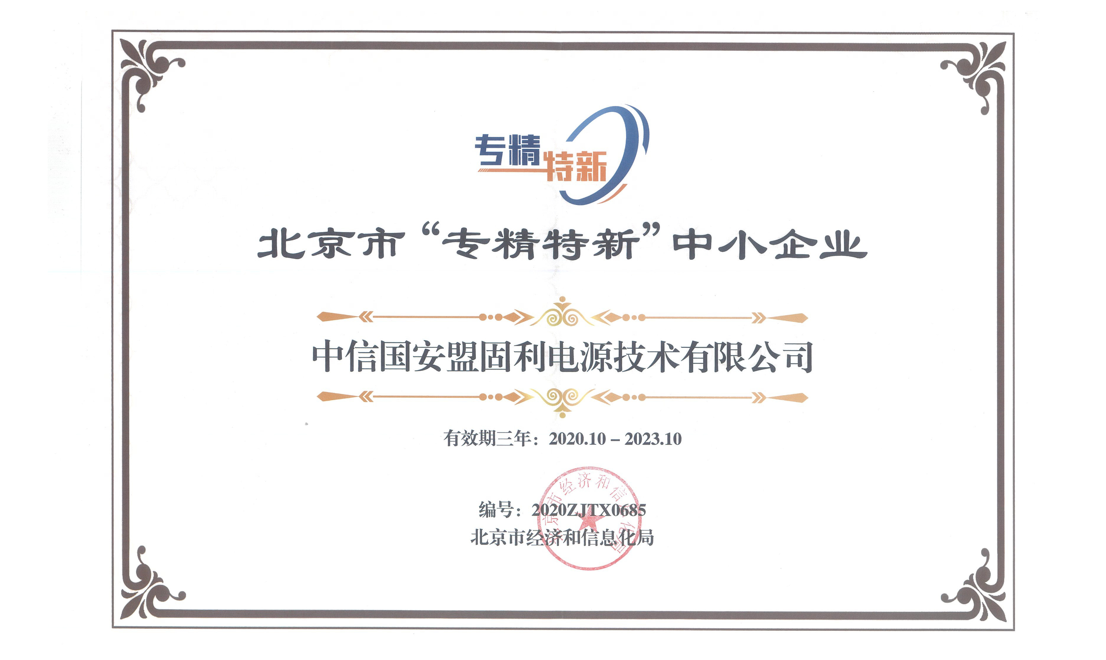 喜讯丨中信国安乐竞体育电源技术有限公司被认定为北京市“专精特新…